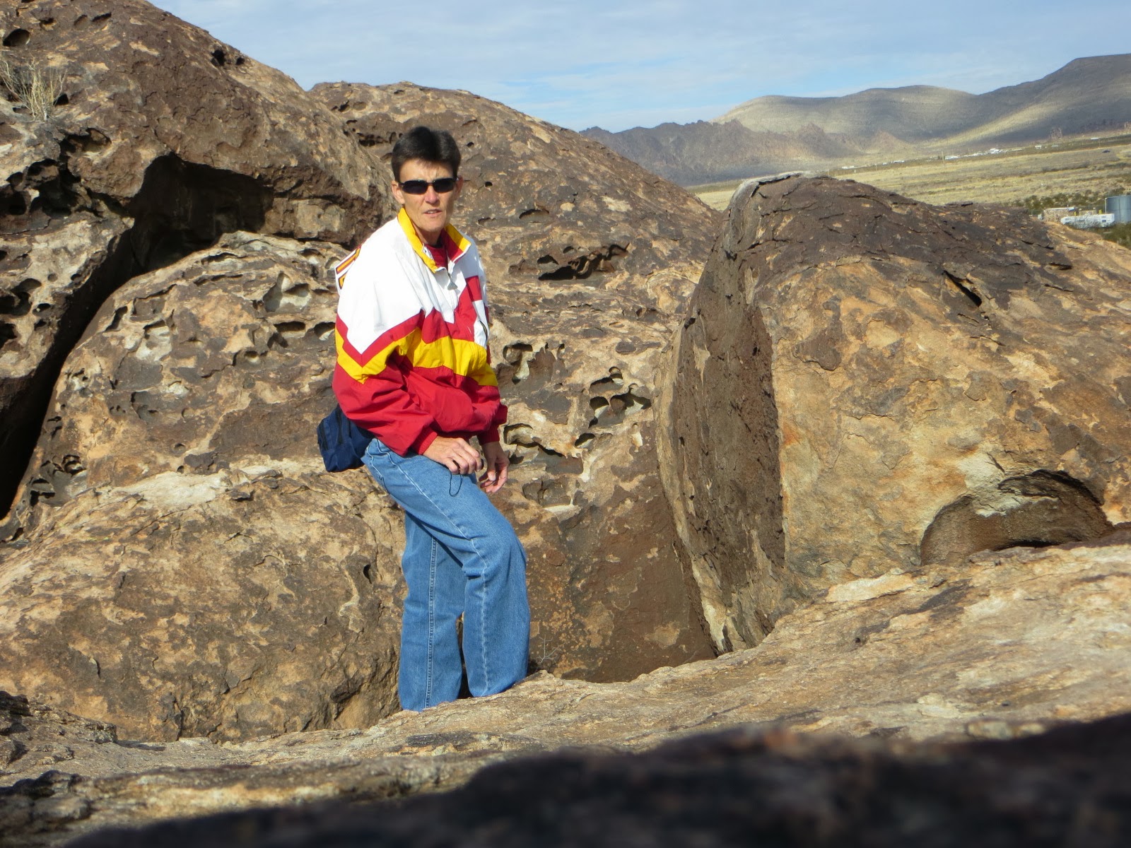 These 1st 2 pictures show some of the Indian rock art we were told to expect to see on our hike, but the 3rd pic shows the only art we could find. (Cathy insisted someone put that there just recently--haha!)